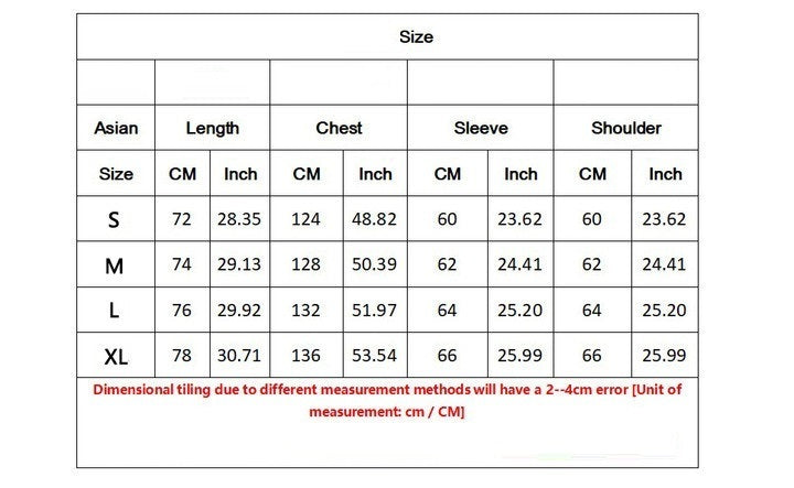 1. Asian sizes are 1 to 2 sizes smaller than European and American people. Choose the larger size if your size between two sizes. Please allow 2-3cm differences due to manual measurement. 2. Please check the size chart carefully before you buy the item, if you don't know how to choose size, please contact our customer service. 3.As you know, the different computers display colors differently, the color of the actual item may vary slightly from the following images.
