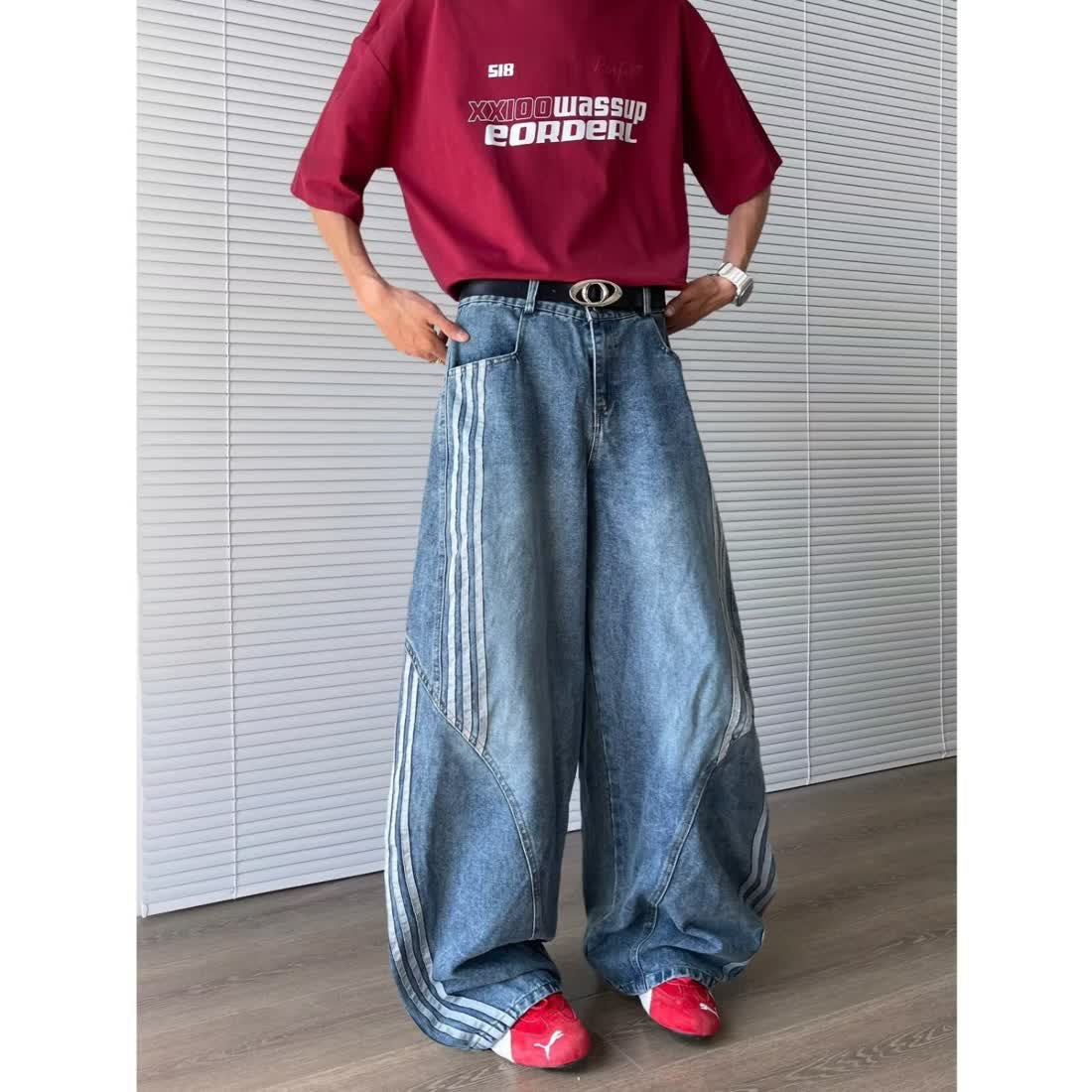 Spring American-style Vintage Washed Deconstructed Bootcut Jeans